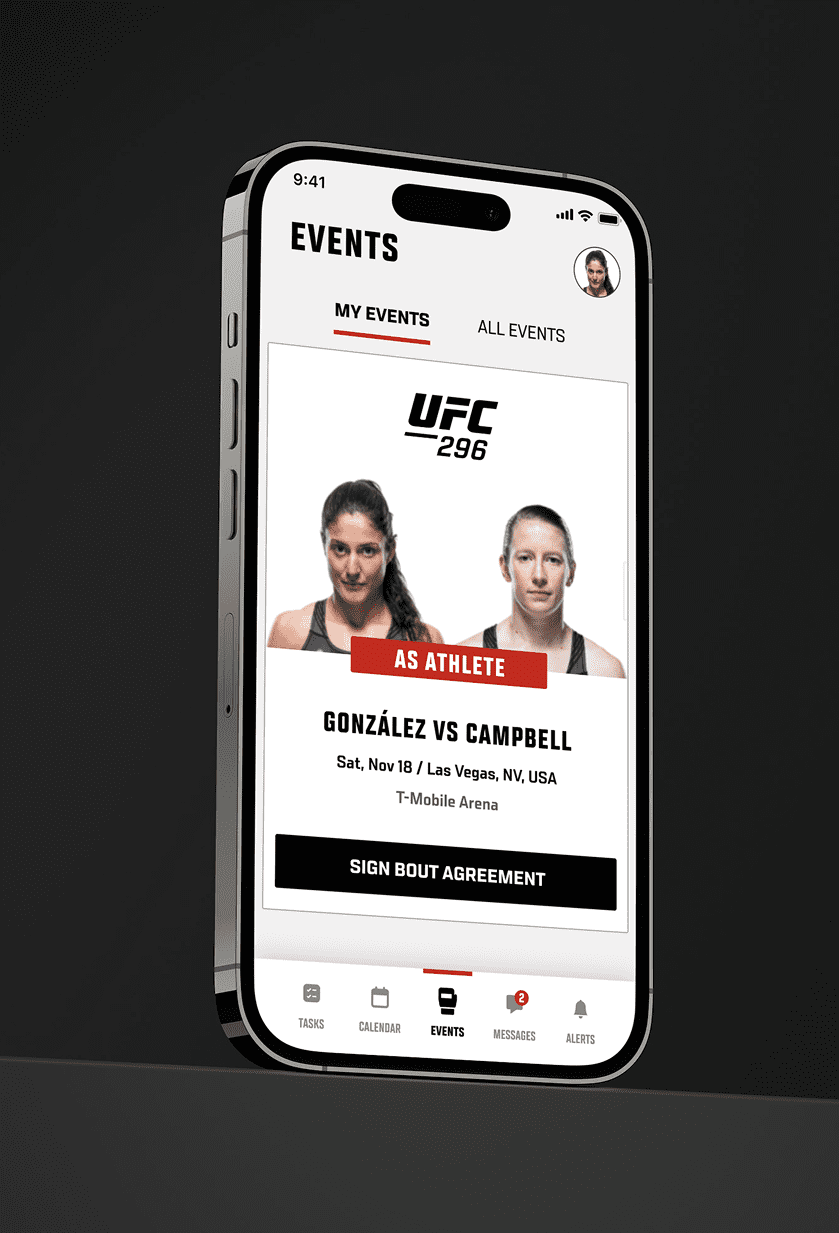 In-app messaging enables direct communication between fighters and UFC staff, eliminating confusion and last-minute scrambling. Shockoe focused on creating a clean, intuitive mobile user experience that minimizes friction, allowing fighters and their teams to focus on performance—not paperwork.